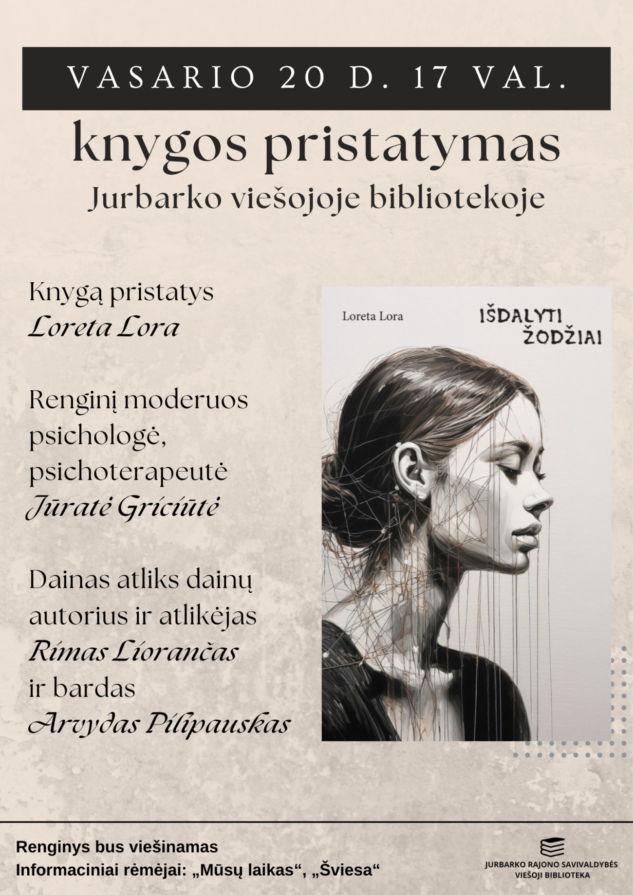 Kviečiame vasario 20 d. 17 val. sutikti Loretos Loros knygą „Išdalyti žodžiai“ Jurbarko viešojoje bibliotekoje!