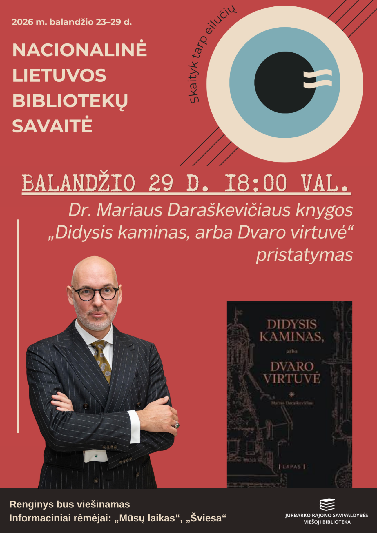 Kaip atrodė istorinės Lietuvos dvarų virtuvės, kokią vietą dvare jos užėmė ir kokią istoriją mums pasakoja šiandien, doc. dr. Marius Daraškevičius gyvai pasidalins ir Jurbarko viešojoje bibliotekoje – knygos „DIDYSIS KAMINAS, arba DVARO VIRTUVĖ“ pristatymas vyks balandžio 29 d.