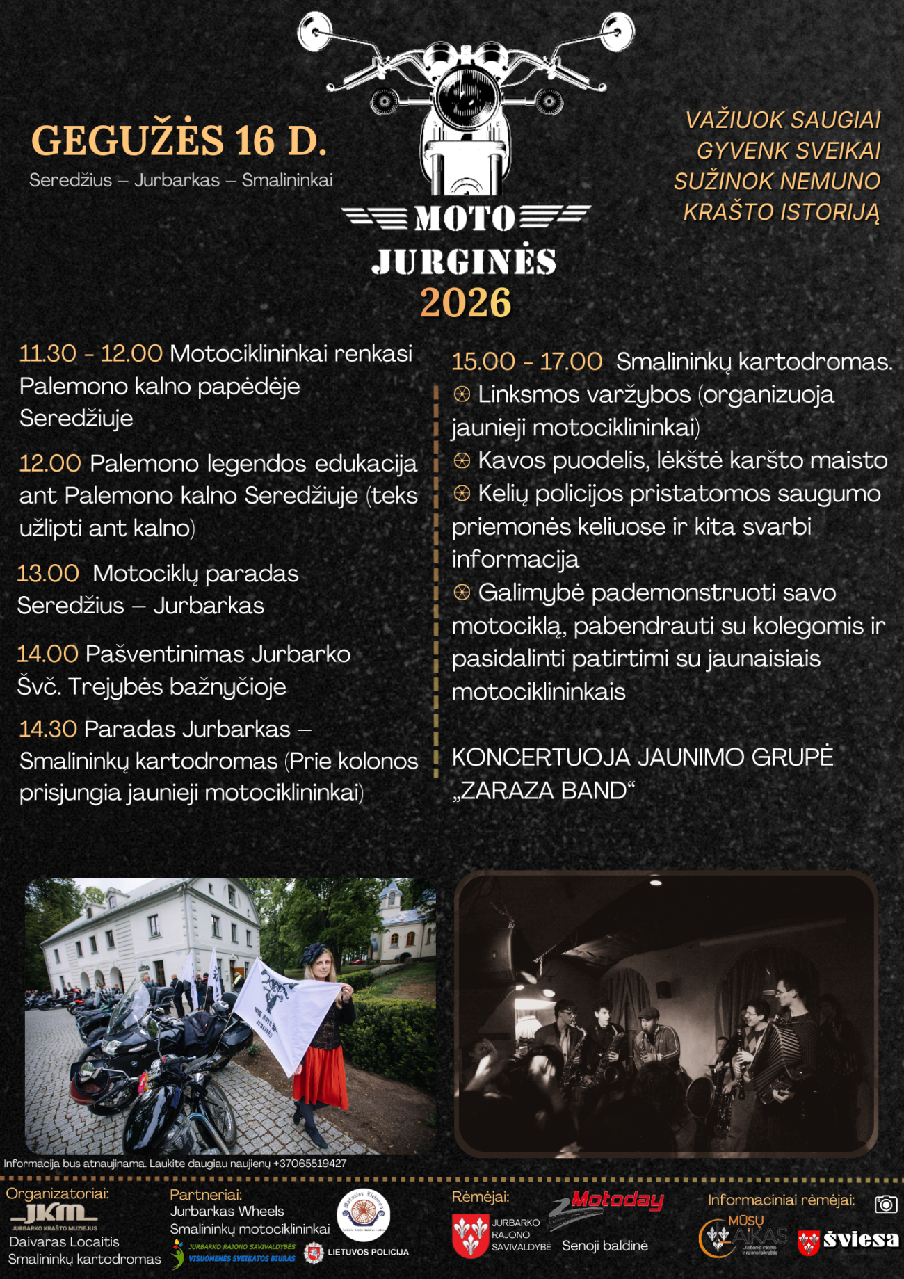 14.30 Paradas Jurbarkas–Smalininkų kartodromas (prie kolonos prisijungia jaunieji motociklininkai)