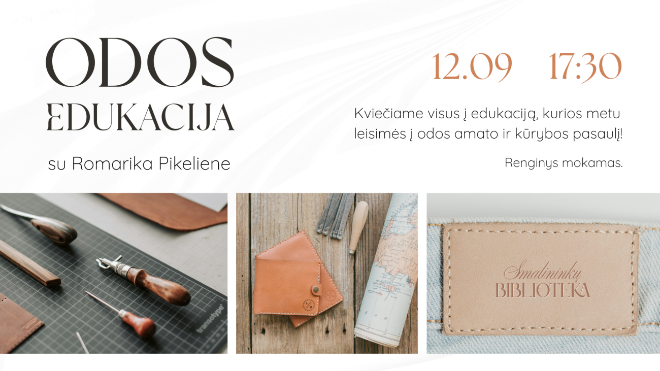Gruodžio 9 d. kviečiame į edukaciją, kurios metu leisimės į odos amato ir kūrybos pasaulį. Kiekvienas dalyvis turės galimybę pasigaminti mažą knygutę, žiedą ir apyrankę iš odos, papuošti juos savitais raštais, spalvomis ir simboliais.