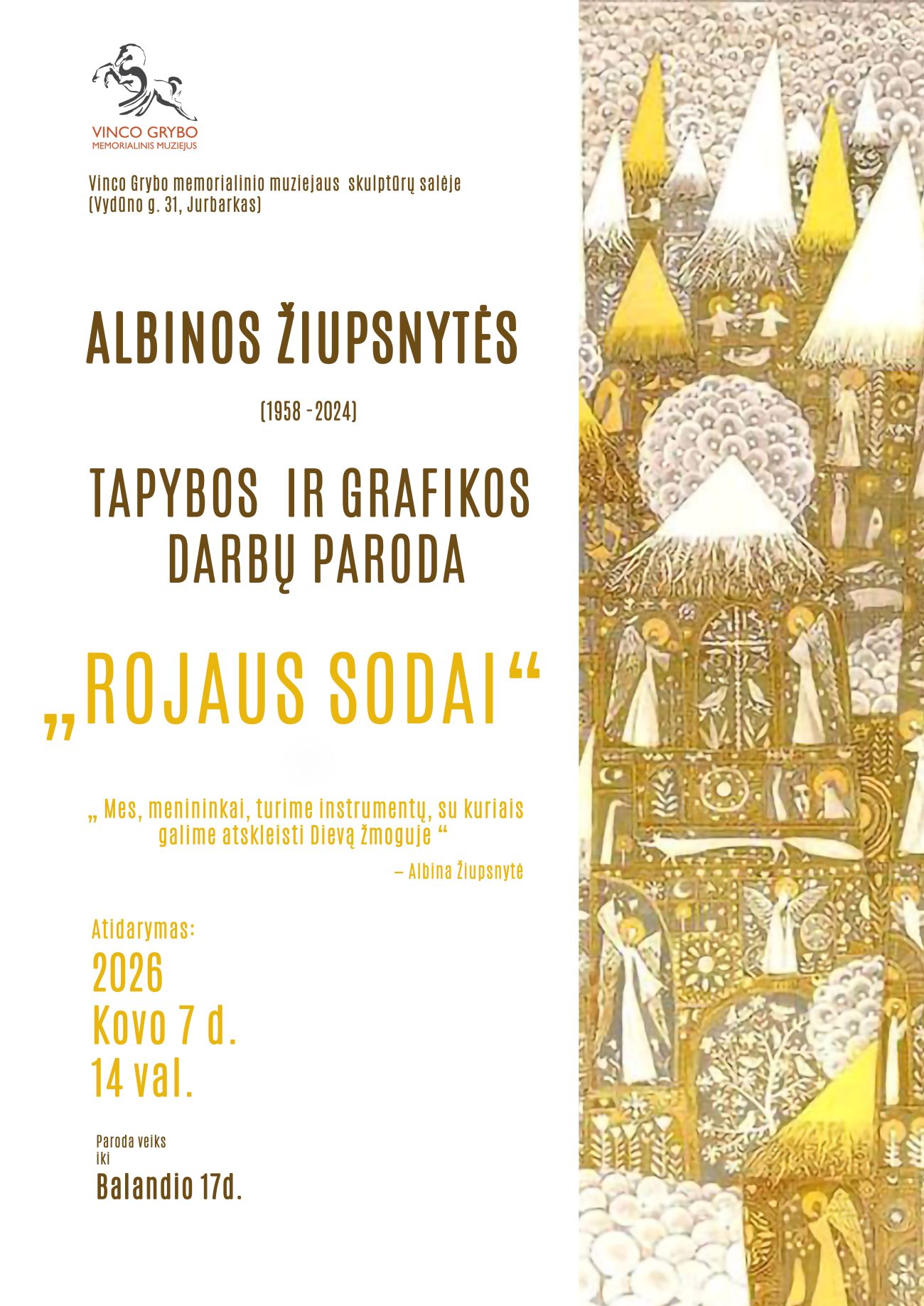 Vinco Grybo memorialiniame muziejuje lankytojas išvys Albinos Žiupsnytės tapybos ir grafikos darbus, kuriuose itin daug šviesios pasaulėžiūros: paveikslai, pripildyti pasakiškos gamtos motyvų, angelų ir simbolių.