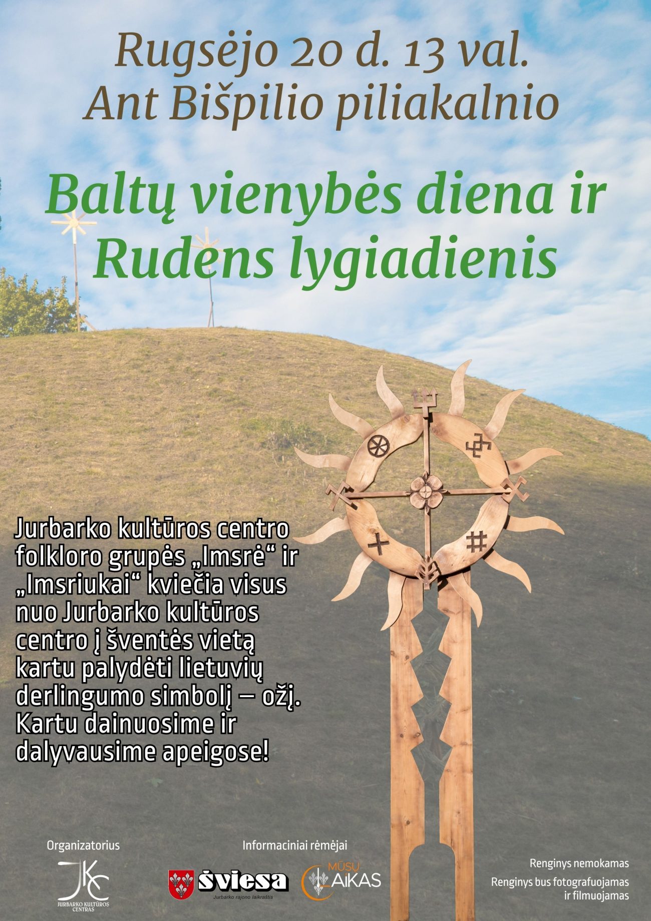 Jurbarko kultūros centro folkloro grupės „Imsrė“ ir „Imsriukai“ kviečia visus nuo Jurbarko kultūros centro į šventės vietą kartu palydėti lietuvių derlingumo simbolį – ožį. Kartu dainuosime ir dalyvausime apeigose!