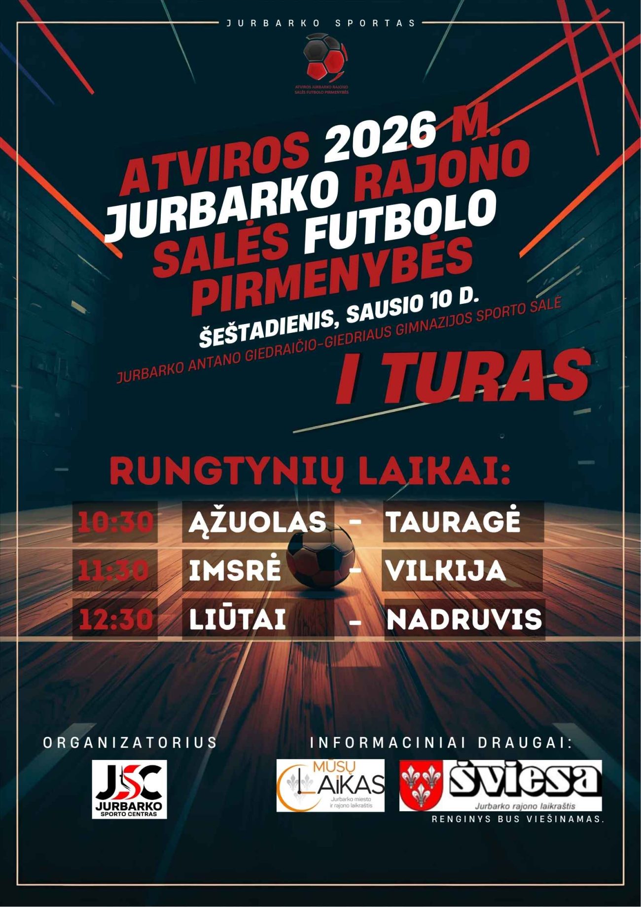Vieta: Jurbarko Antano Giedraičio–Giedriaus gimnazijos sporto salė.