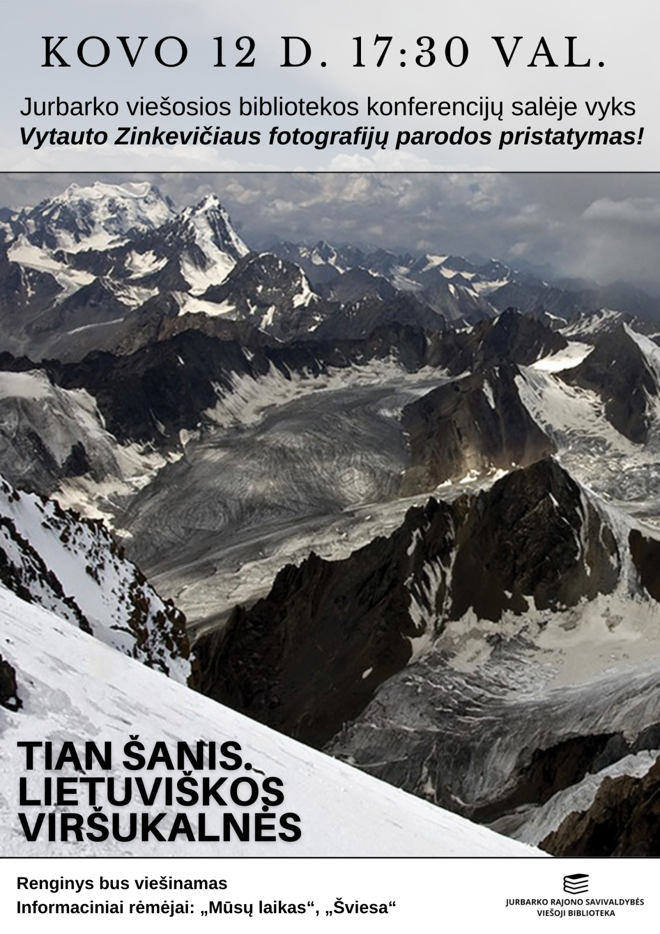 Paroda „Tian Šanis. Lietuviškos viršukalnės“ bibliotekoje bus eksponuojama visą kovo mėnesį.